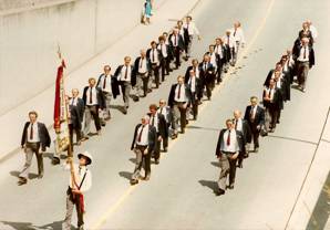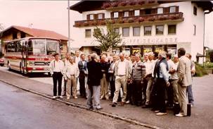 Der Sängerausflug ins Salzkammergut fand am 3./4.9.1983 statt. Mit Ausnahme von Sb. Franz Marmsoler, der sich zum Abfahrtstermin noch in Morpheus’s Armen befand, telefonisch geweckt und als Ehrengast zu Hause abgeholt wurde, waren am Sammelplatz alle Teilnehmer anwesend und der Nigg-Bus startete um 5.00 Uhr morgens mit 35 schläfrigen Sänger an Bord RichtungTirol. Die erste Rast wurde an der Autobahn bei Vomp gemacht, wo der von den Sb. Franz Schäfer bzw. Otto Breuß gespendete z’Nüni in Form von heißem Leberkäse und frischen Brötle, zusammen mit den Getränken von der Bord-Apotheke die müden Lebensgeister in Schwung brachte. Weiter ging es Richtung Kufstein und es sei dem Chronisten gestattet, in weiterer Folge mehr auf die gesellschaftlichen Ereignisse einzugehen, da die beiliegende Reisebeschreibung „Salzkammergut und Salzburg“ die in dankenswerterweise von unserem Chormeister mit der Mithilfe des Ehrenvorstandes erstellt wurde, erschöpfend Auskunft über Landschaft, Geschichte und andere wissenswerte Details gibt.