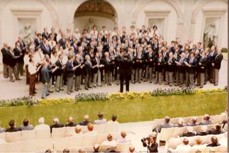 Beim Landessängertag der bei herrlichstem Sommerwetter am 12.6.1983 in Hohenems stattfand, gestalteten wir zusammen mit dem Männerchor aus Egg und dem „Frohsinn“ Nofels den Gottesdienst in der Kirche St. Konrad. Allerdings mussten wir vorher eine Probe für die Gemeinschaftschöre absolvieren, da auf Grund von organisatorischen Problemen vorher kein Termin möglich war. Das Gemeinschaftskonzert im Hof des gräflichen Palastes war schon auf Grund des äußeren Rahmens und der Vielfalt des Gebotenen ein imposantes Ereignis.