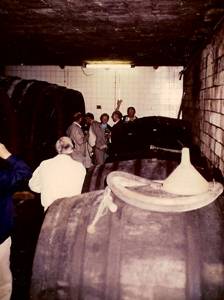 Weinkost, zu der SB Hartmut Förster einen zufällig anwesenden Harmonikaspieler