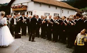 versammelten sich vor der Probe am 30.9.1987 54 Sänger im Sängeranzug und